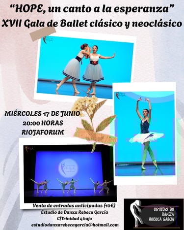 La Gala de este año que lleva por título "Hope, un canto a la esperanza" contará con dos partes, la primera destinada a ballet clásico y la segunda al neoclásico. El cierre de la Gala será precisamente con la pieza coreográfica de "Hope" creada por Rebeca García. Una creación no sólo de danza sino audiovisual con la que se pretende generar una reflexión en el público y una sensación de que el cambio es posible siempre y cuando estemos dispuestos a ello. Luchar por un mundo mejor como comunidad.